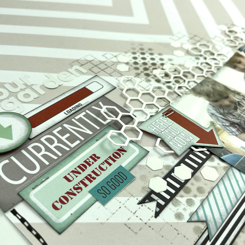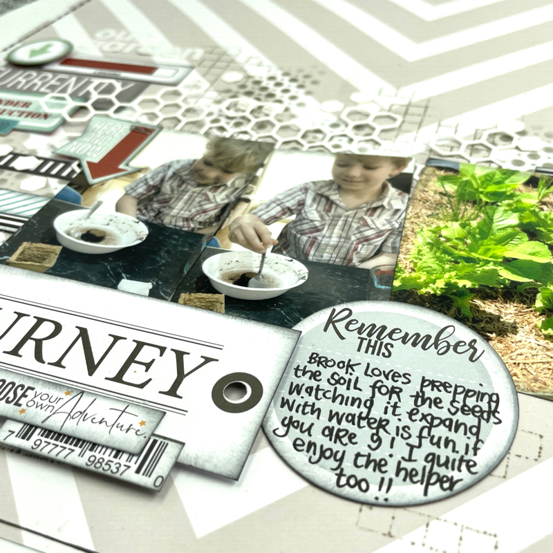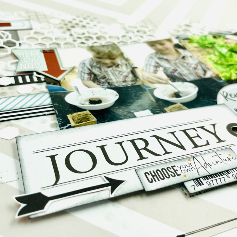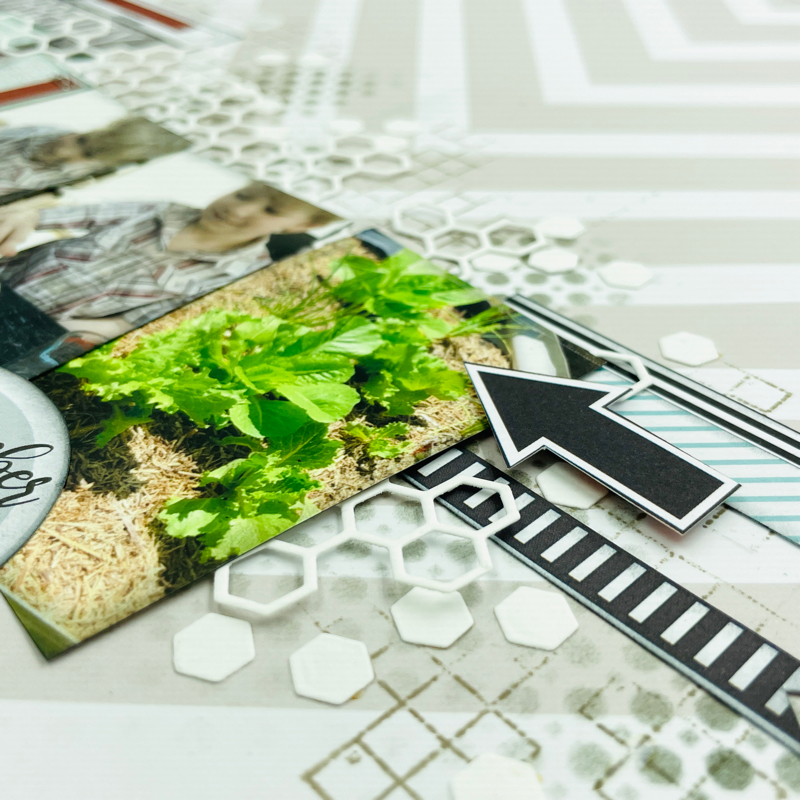Tips for this page....I used several of the cut off barcode strips as bursts of pattern behind my photos, just flag the ends and poke in behind.